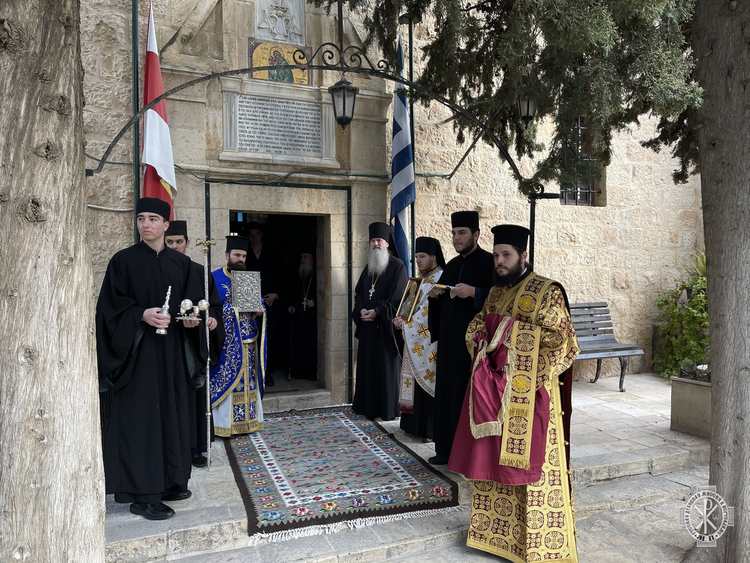Русскую духовную миссию в Иерусалиме на праздничном богослужении представлял ее начальник архимандрит Александр (Елисов) в сопровождении казначея РДМ иеромонаха Афанасия (Букина) и клирика Миссии диакона Ильи Драчука.