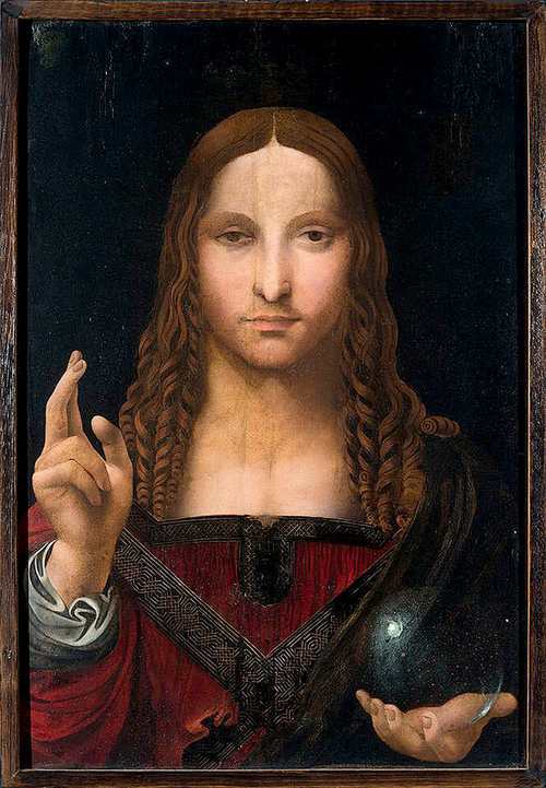 Оригинал «Спасителя мира» (около 1500) Леонардо, с которого написана эта копия, был продан в 2017 году за рекордные $450 млн и по-прежнему остается в центре внимания.