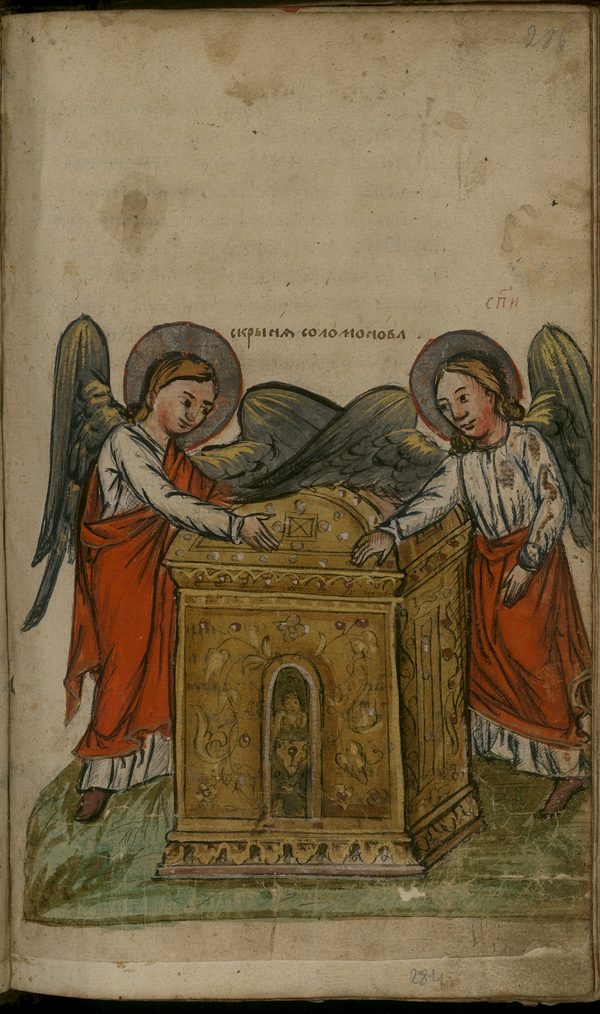 Христианская топография. — XVI в. — 1° (30 × 18,5). 434 л. — Полуустав. 51 миниатюра. Заголовки и инициалы киноварные. Переплет — доски в коже с тиснением. — Инв. № 1095.