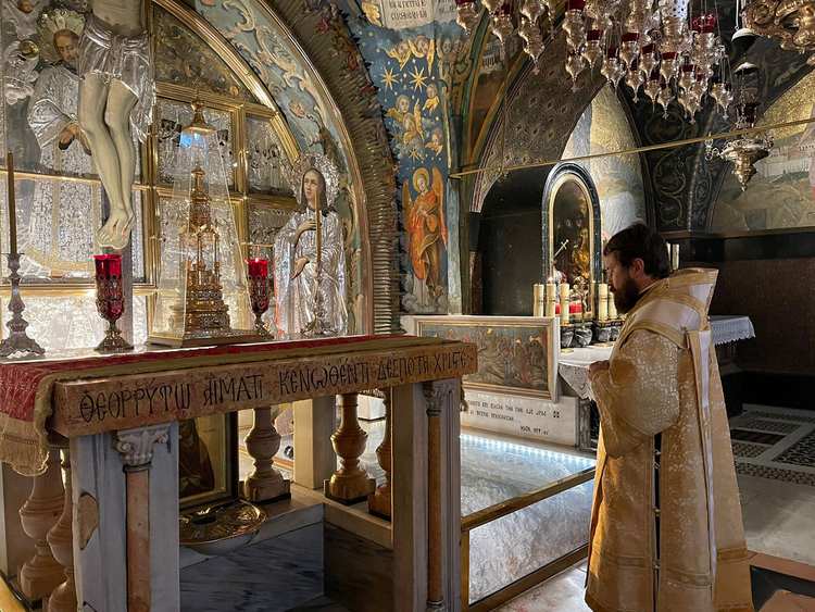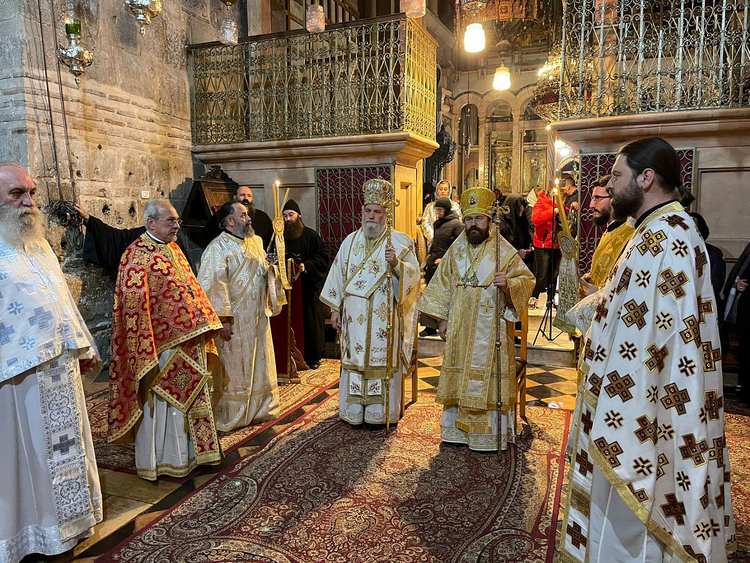 В ночь на 20 февраля по благословению Блаженнейшего Патриарха Святого града Иерусалима и всей Палестины Феофила III митрополит Волоколамский Иларион вместе с митрополитом Капитолиадским Исихием (Иерусалимский Патриархат) совершил Божественную литургию в Храме Гроба Господня. В числе сослуживших были протоиерей Николай Балашов, заместитель начальника Русской духовной миссии иеромонах Дометиан (Маркарян), члены Святогробского братства. За богослужением пели сестры Горненского монастыря.