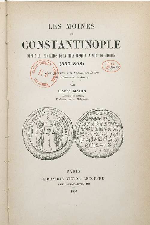 Текст диссертации аббата Марена под названием "Монахи в Константинополе с момента основания города до смерти Фотия (330-898 гг.)" (Les moines de Constantinople depuis la fondation de la ville jusqu'a la mort de Photius (330–898)) был издан в Париже в 1897 году.