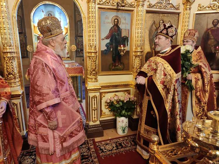 От имени Предстоятеля Православной Церкви Чешских земель и Словакии Блаженнейшего митрополита Ростислава и Предстоятеля Православной Церкви в Америке Блаженнейшего митрополита Тихона владыку Нифона поздравили архимандрит Серафим (Шемятовский) и протоиерей Даниил Андреюк.