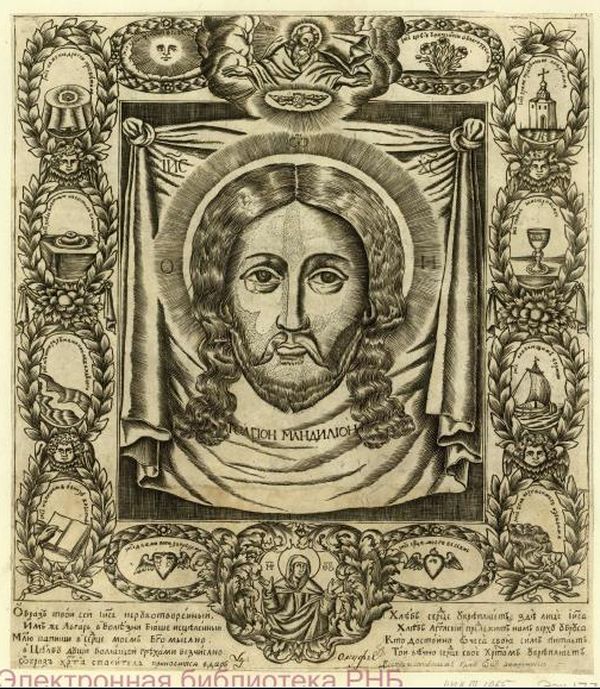 РНБ оцифровала лубок XVIII века «Спас Нерукотворный на убрусе»