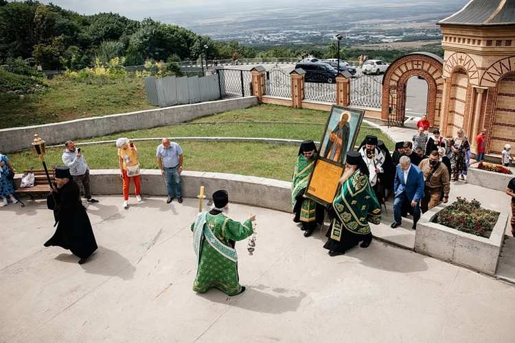 Торжественную встречу святыни возглавил священноархимандрит Второафонской обители архиепископ Пятигорский и Черкесский Феофилакт.
