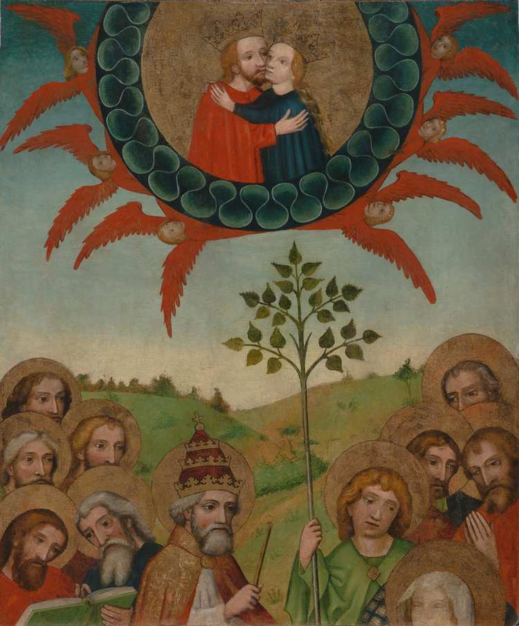 «Успение Богоматери». Оборотная сторона алтарной створки. Верхний фрагмент композиции.