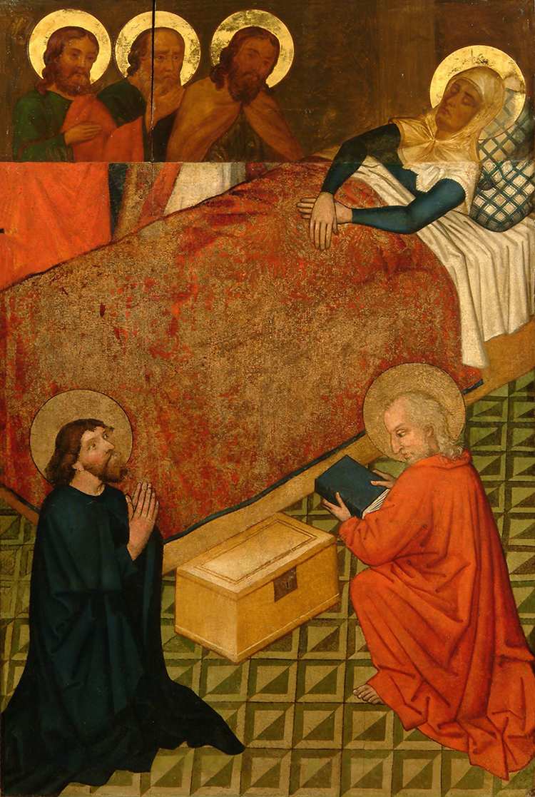 «Успение Богоматери». Оборотная сторона алтарной створки. Нижняя часть композиции.