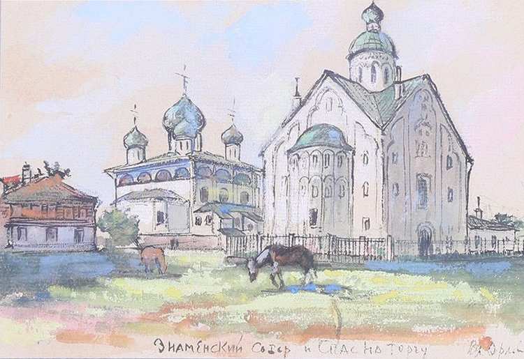 Идея показать акварельные рисунки Владимира Орлова пришла хранителю Оксане Ивановне Зарицкой. Работая в фондах, она обнаружила 185 листов с удивительными пейзажами, посвященными русской храмовой архитектуре. Каждый лист подписан автором и оформлен в паспарту. По этим подписям сотрудники музея смогли восстановить географию поездок художника. В начале ХХ века Орлов зафиксировал облик новгородских, псковских, угличских церквей. 1920–1930 годами помечены виды храмов Ростова Великого, Костромы, Ярославля, Вологды. Последние работы мастера — виды Троице-Сергиевой лавры, датированы 1959 годом.