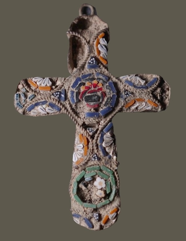 О находке сообщили в израильское Управление древностей. Доктор Амит Реем, археолог Иерусалимского округа Израильского управления древностей, примерно определил возраст находки - кресту около 100-200 лет. Он искусно выполнен в технике микромозаики. Ее уникальность заключается в том, что для инструктации на металлической основе используются необычно маленькие кусочки стекла или материала, похожего на эмаль, размером 1 мм и даже меньше, т.н. тессеры.
