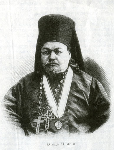 «Нива» № 6 от 1889 года поместила на 4-х страницах (с 167 по 170, из коих одну заняли фотографии о. Паисия, Ашинова. Негуса и других) обстоятельную статью о Русской духовной миссии в Абиссинии. Из нее мы узнаем, что о. Паисий был родом из оренбургских казаков, в рядах которых он прошел недолгую службу, после чего начал свой духовный подвиг монахом Афонского Пантелеймоновского монастыря. После пострижения в схиму в 1876 году о.Паисий был направлен игуменом обители в Царьград (Константинополь) для строительства подворья, и весь отдался своему послушанию.