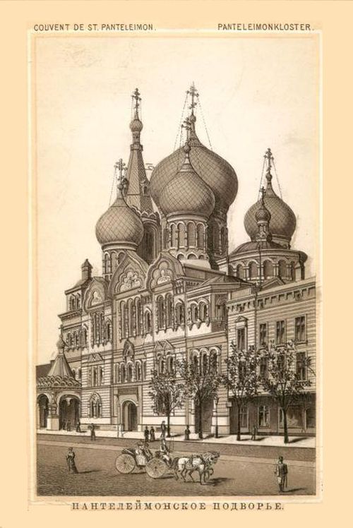 «Сегодня состоится торжество закладки нового большого православного храма в Одессе, сооружаемого на средства Пантелеимоновского монастыря на Афоне на принадлежащем одесскому подворью монастыря месте на Ново-Рыбной ул., как раз против строящегося здания судебных учреждений. Все сооружение Пантелеимоновского монастыря строится таким образом, что два нижние этажа по фасаду Ново-Рыбной ул. будут заняты жилыми помещениями; церковь же будет расположена во всю длину места по улице, над жильем, будет высока и в состоянии вместить в себе до 5000 богомольцев. Таким образом, с перемещением тюремного замка, окончанием здания для судебных учреждений и постройки нового храма площадь перед пассажирским вокзалом совершенно преобразится и всякому приезжающему в наш город при выезде с вокзала прежде всего, вместо нынешней тюрьмы, будет бросаться в глаза грандиозный храм. Церковь и другие сооружения Пантелеимоновского Подворья строятся по проекту молодого архитектора Прокоповича и обойдутся от 350 000 до 400 000 руб.».