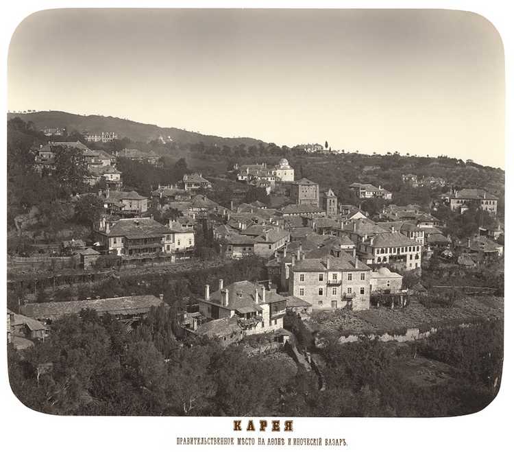 Было уже 11 часов дня, когда великий князь и его свита сели на приготовленных для них монастырских мулов и двинулись от Русика по дороге в Карею. Впереди ехал каймакан (турецкий афонский полицмейстер) с сердарями (афонская внутренняя стража); Его Высочество ехал на белом статном муле, по сторонам его шли один из сердарей и кавас солунского консула. Чрез час пути проехали мимо живописных, повитых плющем, развалин "Старого Русика" уступленного русскому Афонскому братству греками еще в 1169 г., как видно сие из сохранившейся грамоты. Остановясь здесь, Его Высочество выслушал краткий рассказ архимандрита Леонида о пострижении здесь в конце того же XII столетия, в церкви еще уцелевшего доселе монастырского пирга (башни), сербского царевича Растко (в последствии знаменитый сербский архиепископ Савва): как он, усыпив внимание посланных за ним в погоню от отца вельмож, и взяв благословение игумена, взошел на пирг с одним из духовников, где в знак твердости своего произволения, принял от руки его иноческое пострижение, изменив вместе с именем и одежду; когда же посланные, не видя царевича, приступили с угрозами к настоятелю и братии, то юный инок Савва показался на высоте пирга, и, сбросив им оттуда вниз свою царскую одежду и отрезанные при пострижении власы, сказал: "вот мой ответ вам и родителям". Мы знаем, что ближайшим последствием этой решимости Растко было то, что и сам собиратель сербского народа знаменитый жупан Стефан Неманя, оставив престол старшему сыну своему Стефану, принял иноческое пострижение в основанной им лавре Студеницкой, и, пожив здесь недолгое время, удалился на св. гору, где в 1199 году вместе с сыном своим "Саввою Умиленным", основал для иноков сербского языка - сербскую обитель Хилендарь, занимающую и доселе 4-е место между всеми Афонскими монастырями.