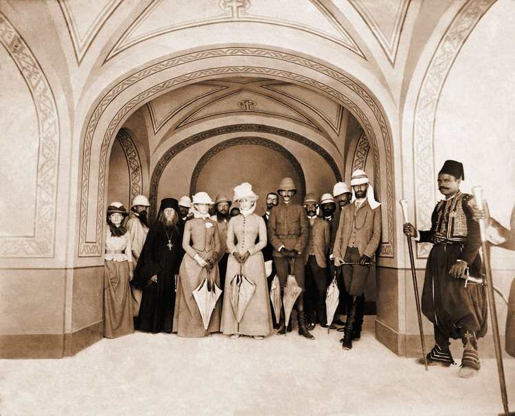 Их Императорские Высочества Великий Князь Сергий Александрович, Великая Княгиня Елисавета Феодоровна и Великий Князь Павел Александрович предприняли путешествие в Святую Землю с целью присутствовать при освящении построенного близ Иерусалима, на средства Государя Императора и Его Августейших Братьев и Сестры, храма в память в Бозе почивающей Государыни Императрицы Марии Александровны, а также для обозрения в Сирии и Палестине учреждений Православного Палестинского Общества, председателем которого, как известно, состоит Великий Князь Сергий Александрович.