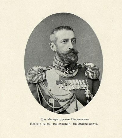 Великий князь Константин Константинович особое свое внимание к полезно-плодотворной деятельности Императорского Православного Палестинского Общества засвидетельствовал в день 25-летнего его юбилея, в лестном для Общества адресе от Академии наук, как ее Председатель, говоря, что Общество "внесло в сокровищницу палестиноведения, церковной археологии и агиологической литературы поистине огромный труд". В частности, лично за себя, он поручил быть представителем на юбилейных торжествах в Петергофском дворце 21 мая 1907 г. своему первенцу - Его Высочеству князю Иоанну Константиновичу. В самое последнее время, перед началом настоящей войны и незадолго до своей кончины, он разрешил вступить в ряды деятельных сотрудников Императорского Православного Палестинского Общества талантливому и много обещавшему сыну своему - Его Высочеству князю Олегу Константиновичу, нить драгоценной жизни коего была так рано прервана в славном бою за нашу дорогую родину.