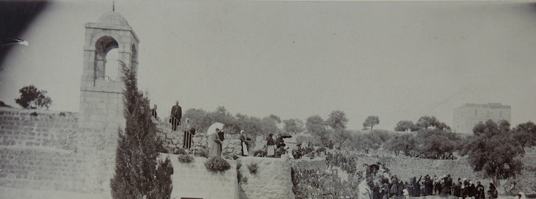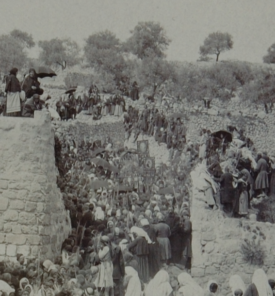 Неизвестный фотограф в начале 1910-х годов запечатлел рождение современной традиции совершать крестный ход в праздник Входа Господня в Иерусалим, заложенной русскими паломниками и Русской Духовной Миссией. Именно поэтому в толпе народа, собравшегося в Виффагии, нет представителей греческого духовенства.