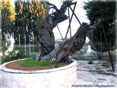 Разновидность этого дуба называется – «теревинф» и характерен для данной местности, листья этого дуба не похожи на российские, мельче по размеру на концах имеют закругление и острие. Тем не менее, отростки от библейского дуба-старца находятся внутри железной ограды и два довольно больших на сегодняшний день дуба называются «дубком Сарры» и «дубком Авраама».