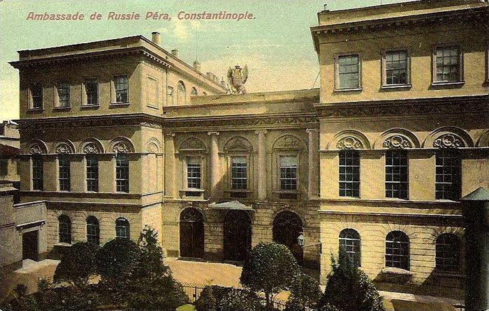 Здание русского посольства в Константинополе (до 1867 г. – миссии) в районе Пера построено в 1845 г.