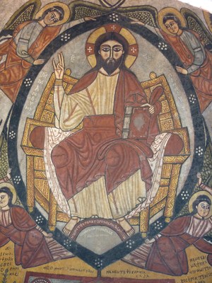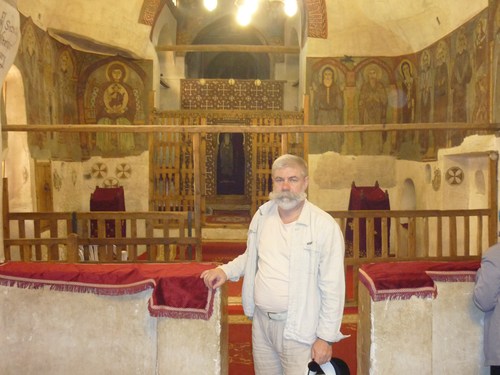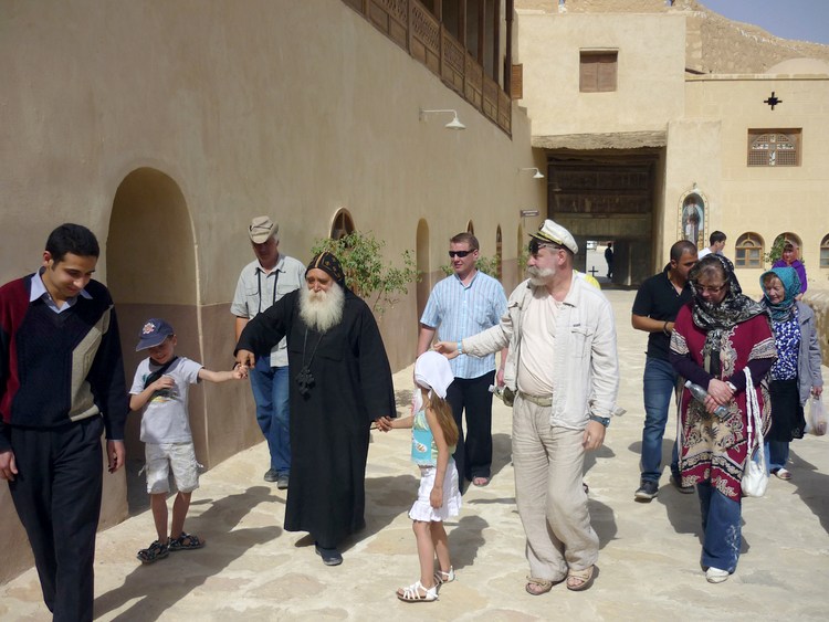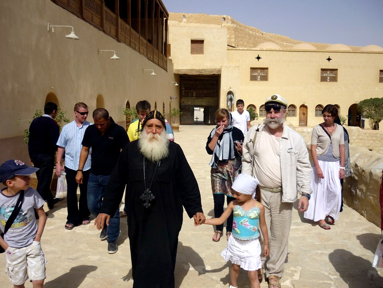К этому островку, далекому от суеты современного мира, и спустился по лестнице председатель Калужского отделения ИППО В. Н. Гороховатский. Почти тысячу семьсот лет на земле Египта стоит этот один из самых древнейших монастырей христианского мира. В монастыре 7 церквей. Только одна из них, церковь Святого Антония, старинная, построена на месте часовни, где, предположительно, был похоронен преподобный Антоний. Прах его покоится справа от алтаря. Стены церкви украшают недавно отреставрированные фрески.