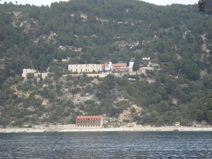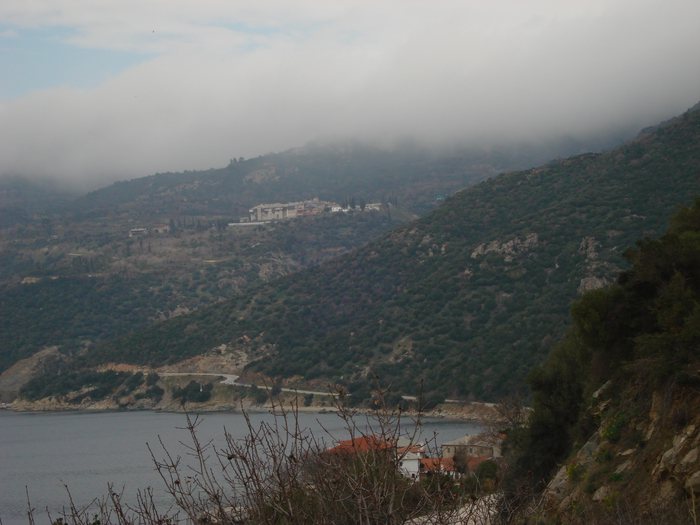 Поднимаемся и спускаемся по горным дорогам, которые петляют то вверх то вниз. Красота вокруг необычная, необычная, вроде и нерусская, но своя, родная, потому что Божия! Слева горы, справа живописный вид на море. Необычная, непередаваемая афонская тишина. Идем, тихо обсуждаем церковные и даже государственные проблемы России. Нас историков-международников уже не исправишь.