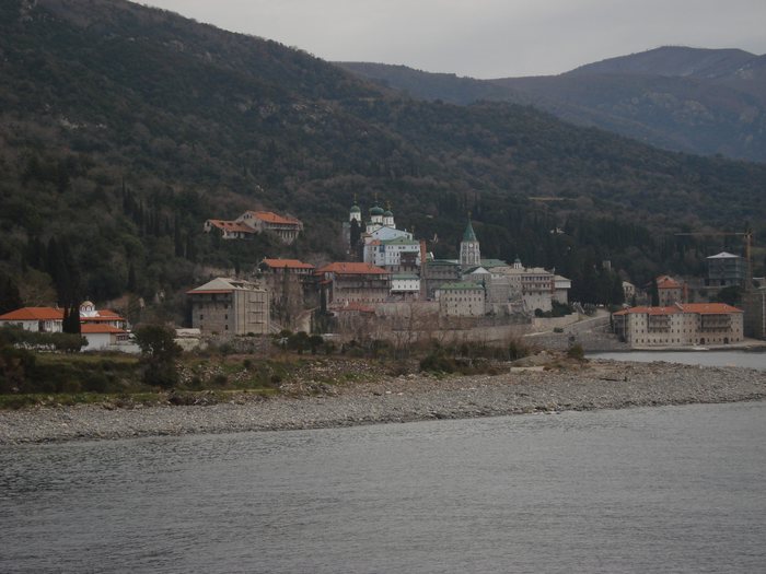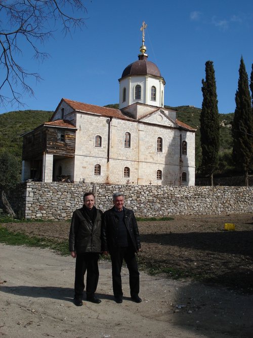 5 марта (четверг). С утра, а точнее с ночи, когда мы поднялись на службу, подул шквальный ветер с Африки. На море разгулялись «беляки», зарядил проливной дождь. Еще накануне мы решили идти пешком в Свято-Пантелеимонов монастырь. Но утром, проходя на службу в храм, я начал малодушествовать, идти ли в такой шторм. Как бы с дороги не снесло ветром. Но мой спутник, председатель отделения, а самое главное – раб Божий Олег, человек волевой, сказал: «Нет, пойдем». Его решимость вдохновила меня грешного, немощного. И мы не пожалели, что пошли. Оделись потеплее. Еще только светало, в 7 часов утра отправились, покинув с ведома настоятеля службу.