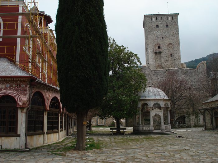 3 марта (вторник). В 5 часов утра по греческому времени началась длительная, примерно пятичасовая служба, вмещавшая полунощницу, часы, изобразительны, утреню. Земные поклоны молитвы святого Ефрема Сирина. «Господи и Владыко живота моего, дух праздности, уныния, любоначалия и празднословия не даждь ми». Трапезы никакой, дозволяется паломникам водички и сухариков. Слава Богу, что привел нас в эту обитель помолиться суровой и чистой монастырской молитвой!