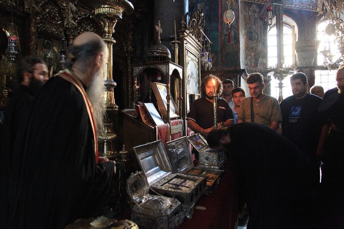 Вечером члены делегации РПЦ совершили поклонение главной святыне монастыря — Поясу Пресвятой Богородицы, а также находящимся в обители многочисленным чудотворным иконам Божией Матери и святым мощам. Далее состоялась официальная встреча главы Нижегородской митрополии и архимандрита Ефрема.