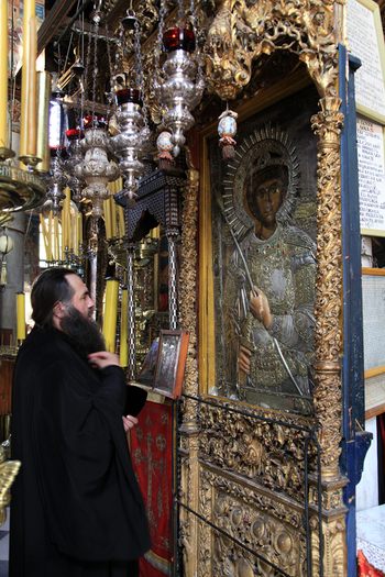 В этот же день делегация РПЦ совершила паломничество в основанный грузинами в Х веке монастырь Ивирон, где находится знаменитая чудотворная Иверская икона Божией Матери. Перед этой святыней митрополит Георгий отслужил молебен с чтением акафиста Пресвятой Богородице. За богослужением молились все члены делегации.