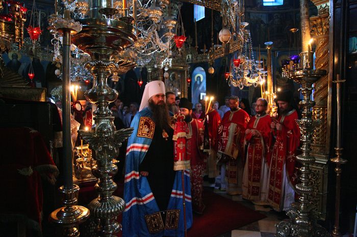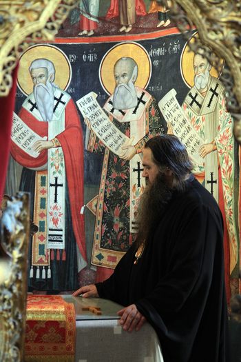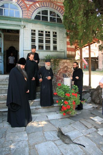 В этот же день делегация РПЦ прибыла в болгарский монастырь Зограф. Там Его Высокопреосвященство молился за вечерним богослужением в соборном храме в честь святого великомученика Георгия Победоносца.