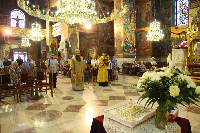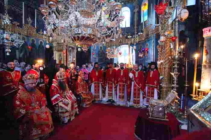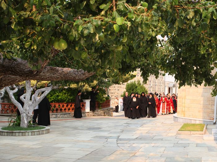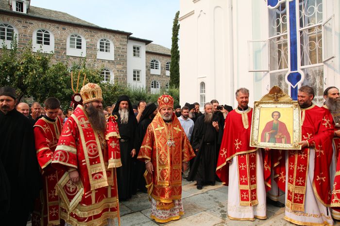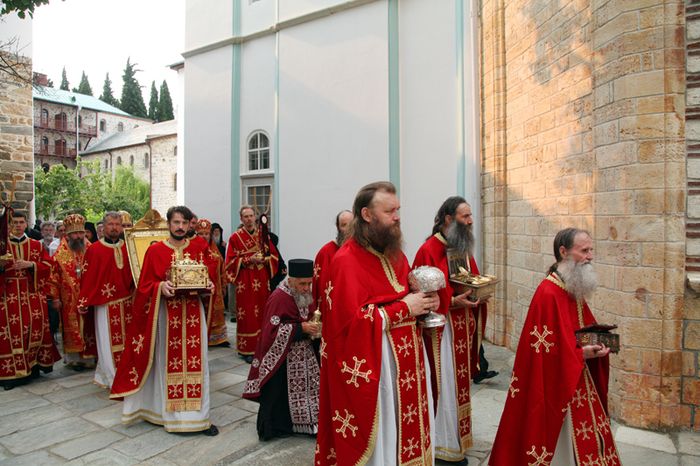 После литургии состоялся крестный ход вокруг храма. Затем глава делегации РПЦ огласил поздравление Святейшего Патриарха Московского и всея Руси Кирилла, адресованное настоятелю монастыря архимандриту Иеремии (Алёхину), братии обители и многочисленным паломникам. От себя лично митрополит Георгий поблагодарил настоятеля и братию за теплый прием и предоставленную возможность совершить паломничество на Святую гору Афон.