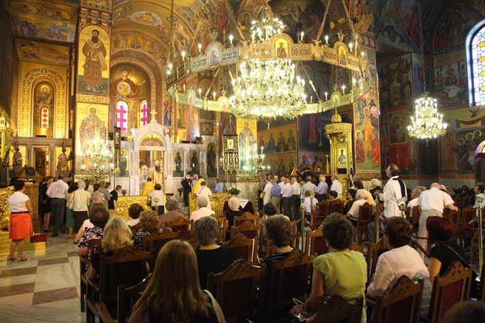 Утром 12 августа по благословению митрополита Салоникского Анфима митрополит Нижегородский и Арзамасский Георгий совершил Божественную литургию в кафедральном соборе святого Григория Паламы города Салоник. На литургии присутствовали Генеральный консул Российской Федерации в Салониках А. А. Попов и вице-консул А. А. Петричко, а также многочисленные прихожане храма и паломники из России. По окончании литургии главу делегации РПЦ приветствовал настоятель собора архимандрит Мефодий, который от имени митрополита Фессалоникийского Анфима поблагодарил его за совершенное архиерейское богослужение. Митрополит Георгий преподнес в дар собору икону преподобного Серафима Саровского.
