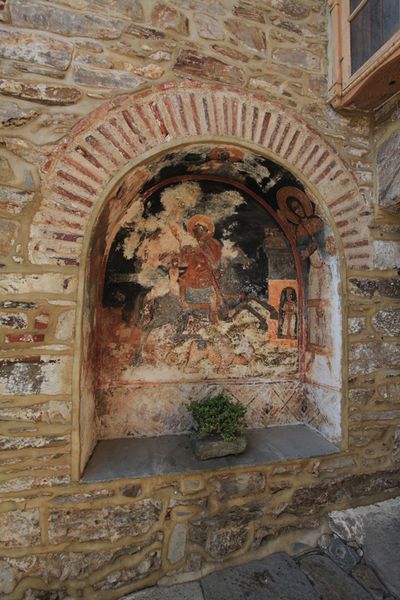 Во второй половине дня делегация РПЦ прибыла в монастырь Пантократор, расположенный на другой стороне полуострова, на котором находится Святая гора Афон. Здесь к делегации присоединился викарий Донецкой епархии архиепископ Святогорский Арсений.