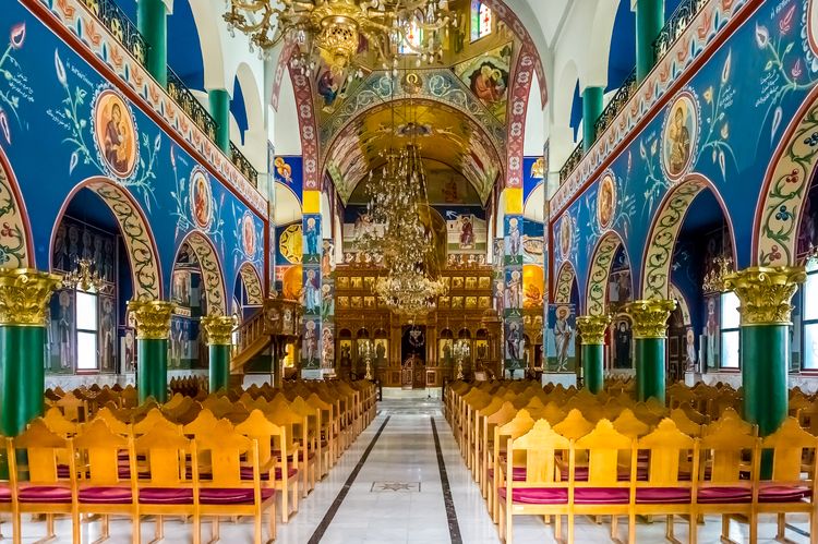 Внутренний интерьер храма святых равноапостольных Константина и Елены в Аммане.