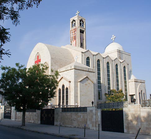 От исторического центра иорданской столицы за несколько минут можно подняться на один из холмов, на которых стоит город, расположенный на северо-западе, и очутиться в современном деловом районе Абдали. Напротив друг друга здесь стоят внушительная синяя мечеть короля Абдулы I и две церкви - православная и коптская. Православная построена в 1962 году и освящена во имя Благовещения Пресвятой Богородицы. Впрочем, некоторые путешественники почему-то называют ее храмом святого Георгия. Храм Благовещения считается тоже кафедральным собором Филадельфийской митрополии. Есть в Аммане и католический храм Благовещения с характерной для западных храмов островершинной колокольней.