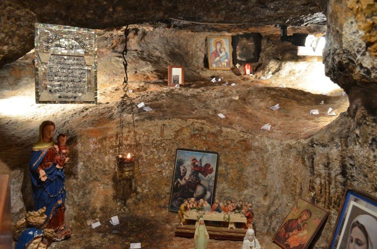 В храме можно помолиться в пещере, где явился святой Георгий, и оставить записку с просьбой к Господу. Стены пещеры пропитаны душистым благовонным маслом, под стеклом сохраняются отпечатки ног и рук святого, оплавившие скальную породу, у алтаря на камне можно различить черты лица.