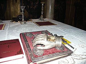 2.Верхняя часть черепа, которая никак не могла быть главой Святителя Николая, поскольку после освидетельствования мощей в Бари было достоверно известно, что глава святого находится там [7];
