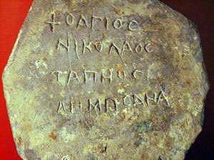 На том месте, где были положены мощи, нашли надпись по-гречески, гласившую: «Здесь почивает великий епископ Николай, славный своими чудесами на земле и на море».