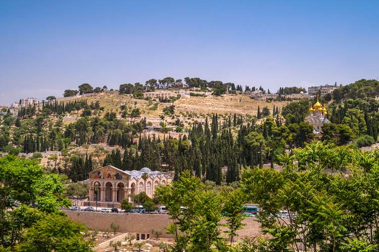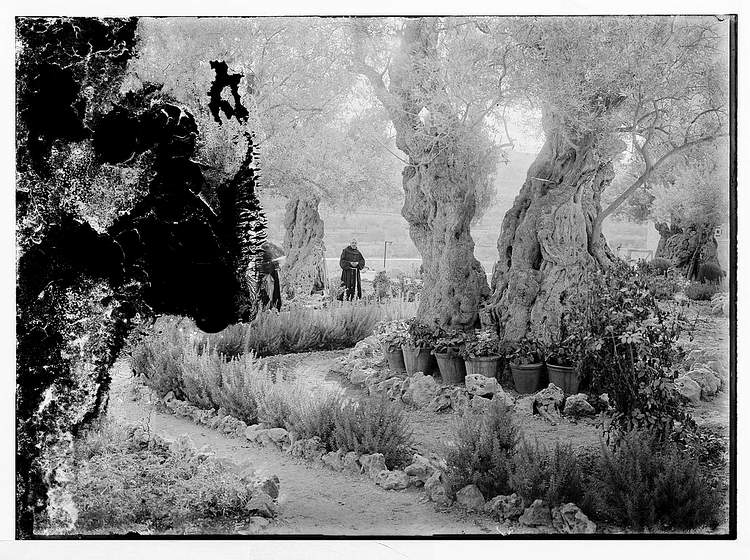 Теперешний Гефсиманский сад заключает в своей белой каменной ограде только небольшую часть обширного сада евангельских времен... «Иисус вышел с учениками Своими за поток Кедрон, где был сад, в который вошел Сам и ученики Его, свидетельствует Иоанн Богослов. Знал же это место и Иуда, предатель Его, потому что Иисус часто собирался там с учениками своими». Теперь во всем саду только восемь одряхлевших маслин тысячелетней древности с рассевшимися всеохватными стволами и тощей седой листвой. Эти ветхозаветные старцы действительно могли быть свидетелями евангельских событий...