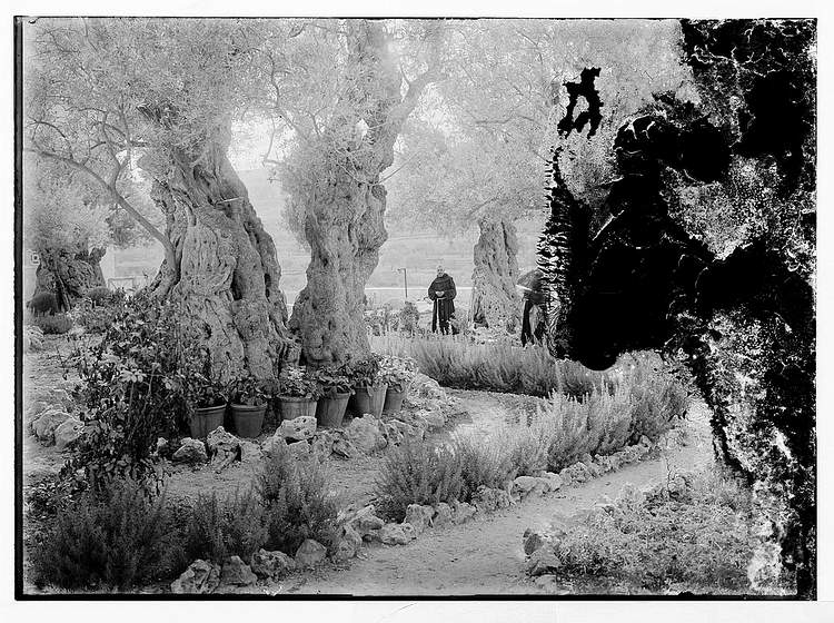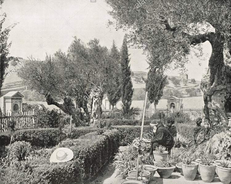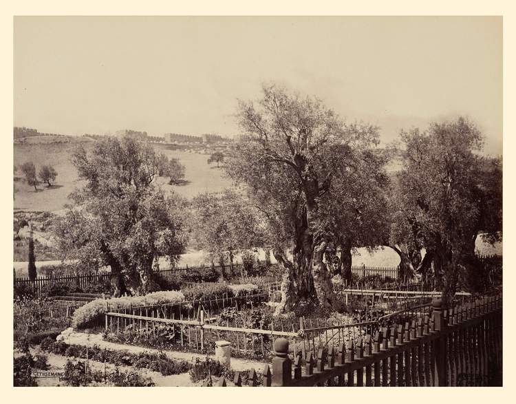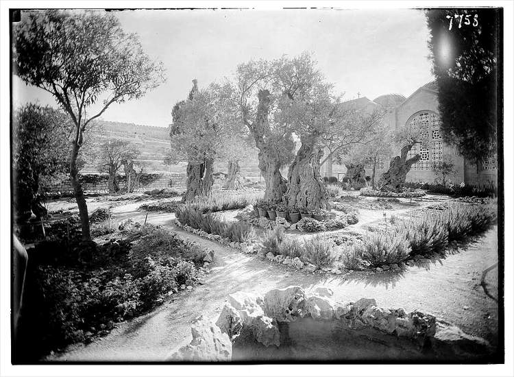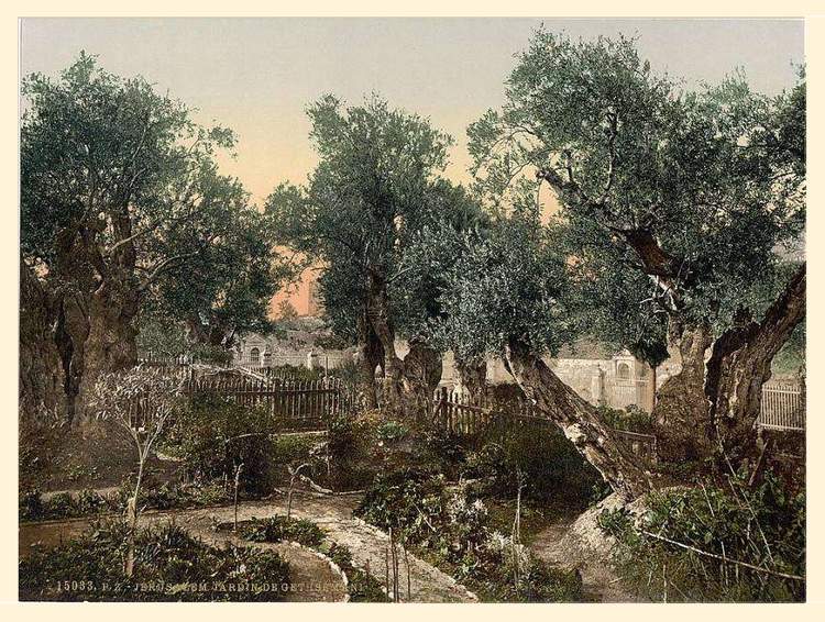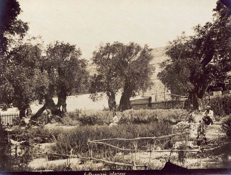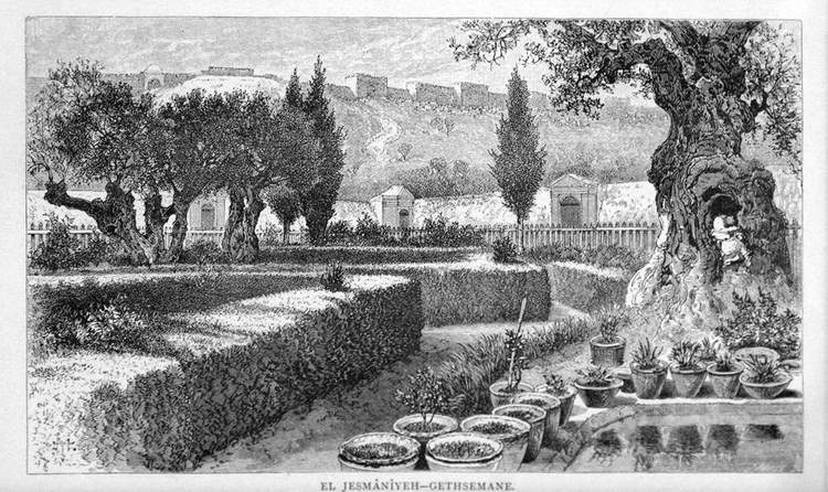 «Недалеко от вертепа Богоматери, по правую сторону дороги, ведущей на Елеонскую гору, указывают остатки Гефсиманского сада, современного Спасителю. Восемь широколиственных маслин глубокой древности, ныне тщательно оберегаемых владетелями этого сада, говорят, произрастают от корней именно тех дерев, под которыми Господь неоднократно уединялся для отдохновения и молитвы. Среди этих именно деревьев Господь был предан Иудой в руки Своих врагов. Говорят, что евреи предлагали большую сумму денег хозяевам этого сада, чтобы истребить Гефсиманский сад, как историческое место беззаконного предательства и начало позорного Суда над Ним, но доселе не имели успеха»4.