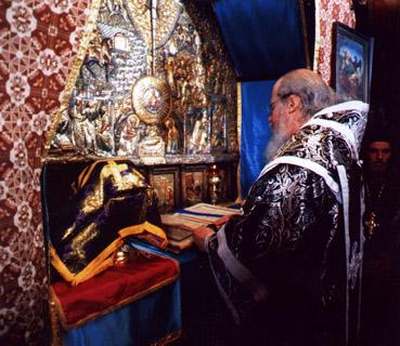 Его Святейшество обошел с паломниками все приделы огромного храма, посвященные событиям Крестных Страданий Господа, и поклонился святой Голгофе, облобызав место, где стоял Крест Христов.