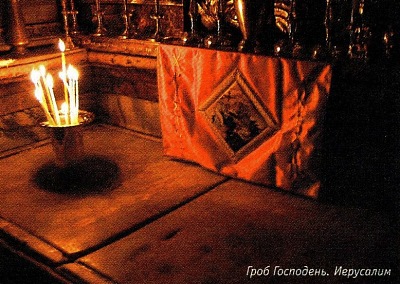 … Поздняя ночь или очень раннее московское утро. Гляжу на огонёк лампады, на Распятие и возникает в памяти слуха мелодия колокольцев кадила у Гроба Господня, и ощущаю, как молитвы, произносимые у него, «яко дым кадильный», восходят к Престолу Господню.
