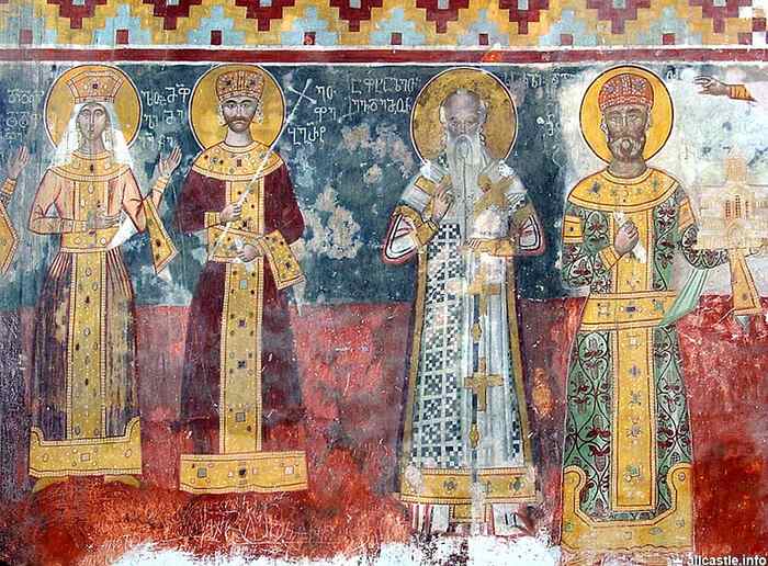 На основании того, что здесь Георгий упомянут вместе со своей второй женой Тамарой, в то время как в главном Рождественском храме рядом с ним стоит его первая жена Русудан, скончавшаяся в 1578 году (в год смерти Католикоса Евдемона), нужно считать, что роспись церкви святого Георгия была закончена уже после смерти и царицы Русудан, и Католикоса Евдемона.