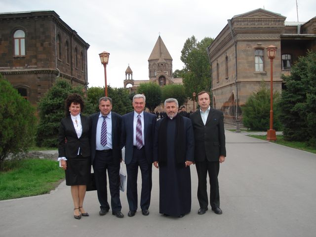 Эчмиадзин. Нижегородские паломники с главой Ново-Нахичеванской и Российской епархии Армянской Апостольской Церкви епископом Езрасом