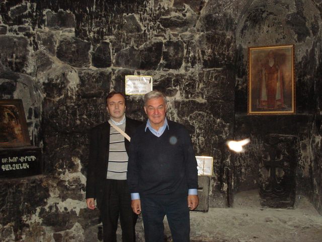 Председатель Нижегородского отделения ИППО О. А. Колобов (справа) и его заместитель А. А. Корнилов в царской темнице в Хор Вирап