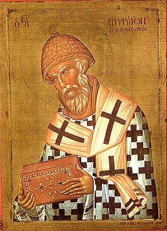 Святитель Спиридон Тримифунтский родился  в конце III века на острове Кипр. Точная дата его рождения неизвестна, также в древних рукописных памятниках не сохранилось и достоверных упоминаний о годе смерти святителя Спиридона. Однако очевидно, что детство и юность святого прошли на Кипре в годы царствования императора Диоклетиана (284–305 гг.), а блаженная кончина Тримифунтского епископа последовала, вероятно, около 350 г. (но не ранее 344 г.). О его жизни сведений сохранилось  мало. Известно, что он был пастухом, имел жену и детей. Все свои средства он отдавал на нужды ближних и странников, за это Господь вознаградил его даром чудотворения: он исцелял неизлечимо больных и изгонял бесов.