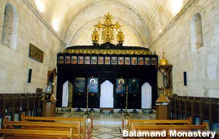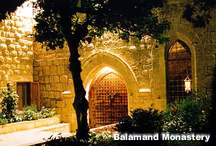 Сразу после монастыря дорога сворачивает вправо и серпантином взбирается на крутую гору, плоская макушка которой покрыта рощей похожих на гигантские зонтики средиземноморских сосен. Через несколько минут мы останавливаемся перед массивными воротами монастыря Баламанд, основанного Клервоским католическим монашеским орденом цистерцианцев. Этот орден был создан в 1098 году во французском монастыре Цистериум близ Дижона. В XII веке он был реорганизован аббатом св. Бернаром Клервоским, и его послушники стали называться бернардинцами. Наибольшего влияния орден достиг в XII—XIII веках: только в Европе он имел 700 мужских и женских монастырей.