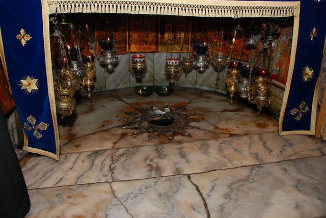 Для христиан всего мира Вифлеемский храм представляет величайшую святыню потому, что под его алтарной частью находится пещера Рождества Христова (вертеп), входы в которую имеются справа и слева от алтаря. Здесь также почти ничего не изменилось за прошедшие столетия, и ее описание, сделанное русским игуменом Даниилом, сегодня не потеряло своей значимости. «Пещера и ясли, где родился Христос, находятся под великим алтарем, они устроены красиво. Ступеней семь идут туда, по ним сходят к дверям пещеры святой, – сообщал игумен Даниил. – Дверей в пещере две, ко второй двери также семь ступеней. Если восточными дверями войти в пещеру, то на левой стороне есть место внизу, где родился Христос. Над этим местом сделана трапеза (престол), и в этой трапезе исполняют службу».
