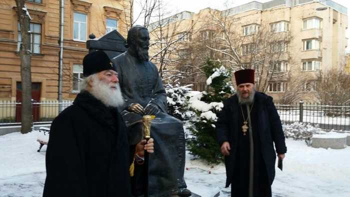 В заключении мы сделали общий снимок сестер с патриархом у памятника Иоанна Кронштадтского.