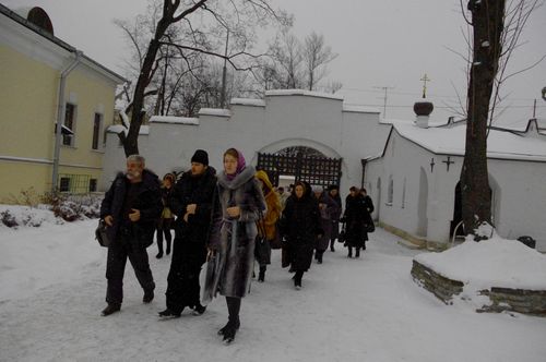 В усыпальнице бояр Романовых была отслужена лития у надгробия великого князя Сергея Александровича. Первоначально прах великого князя Сергия Александровича был похоронен в склепе в Чудовом монастыре, который был взорван при советской власти. Позднее во время дорожных работ останки великого князя были обнаружены и перезахоронены в усыпальнице бояр Романовых Новоспасского монастыря.