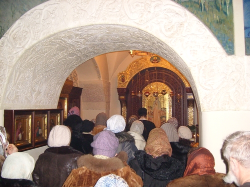 В Покровском соборе обители духовник паломнической группы иерей Сергий Третьяков, секретарь комиссии по культуре при Калужской Епархии, отслужил молебен.