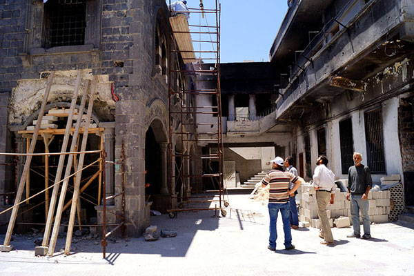 Хомс. Рабочие восстанавливают одну из древнейших христианских церквей мира - церковь Пояса Богородицы, пострадавшую в результате боев