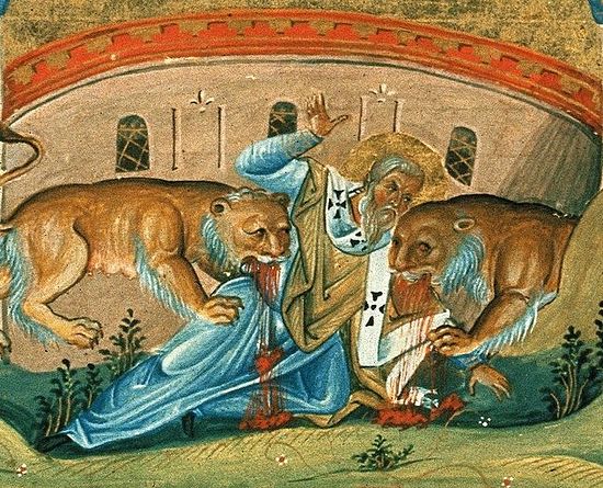 Хотя святитель Игнатий и не увидел Христа во плоти[1], он, несомненно, был современником апостолов Иоанна, Павла и Петра; именно место последнего святитель занял, заступив на Антиохийскую кафедру. Родившийся в Антиохии, святой Игнатий всю жизнь провел на родной сирийской земле, покинув ее лишь для последнего своего подвига – подвига мученичества: в 107 году второй антиохийский епископ, проповедовавший на протяжении всего пути в Рим, был отдан гонителями на съедение диким зверям[2].